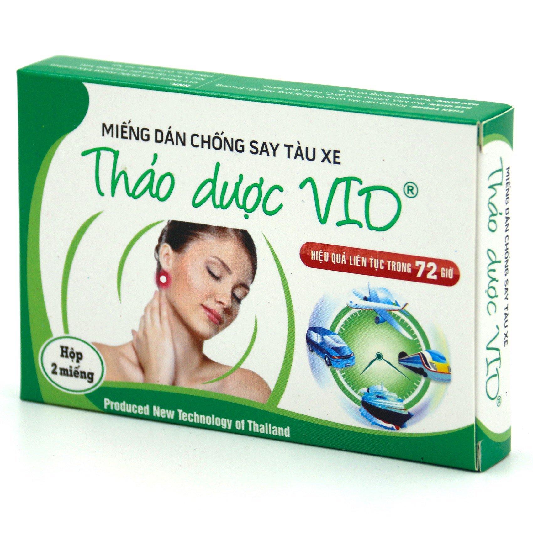 Lau sạch và khô phía sau tai trước khi dùng. Dán 1-2 giờ trước khi khởi hành, sau 4-6 giờ dán có thể gỡ bỏ. Hiệu quả liên tục trong 72 giờ