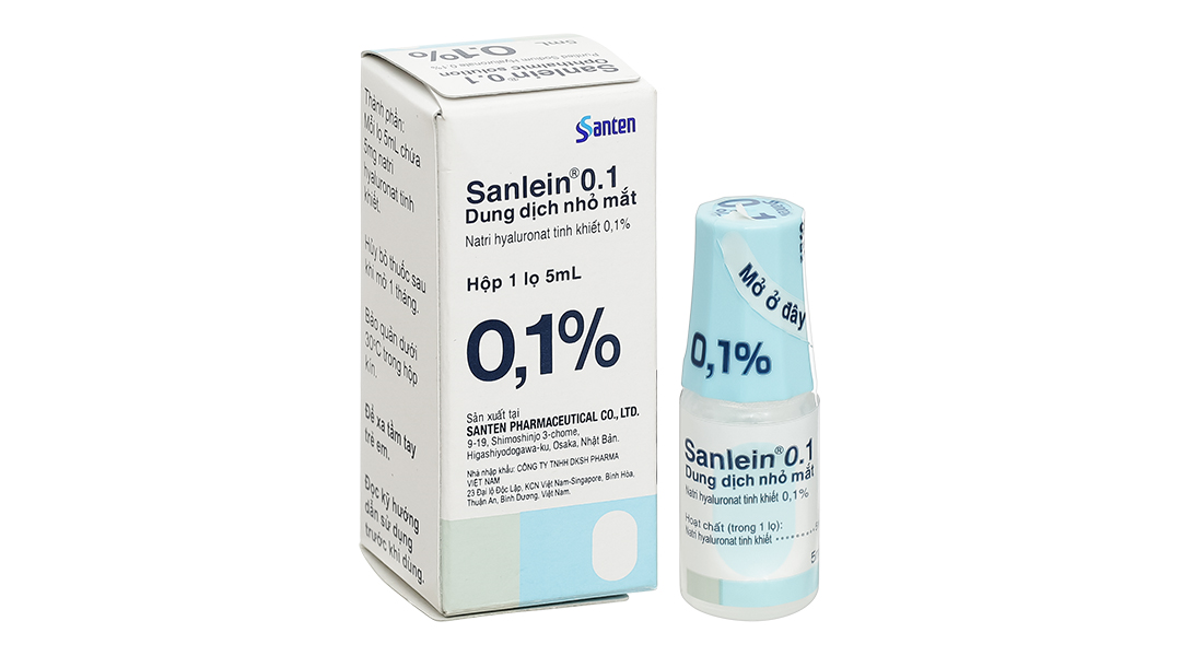 Sanlein 0.1 là dung dịch nhỏ mắt chứa natri hyaluronat tinh khiết, do Santen Pharmaceutical Co., Ltd. triển khai nhằm mục đích để điều trị thương tổn biểu mô liên kết-giác mạc. Natri hyaluronat là một chất sinh học, trong các nghiên cứu tiền lâm sàng cho thấy có tác dụng thúc đẩy sự liền sẹo biểu mô giác mạc và có tính chất giữ nước. Chất này hữu dụng về mặt lâm sàng để điều trị thương tổn biểu mô kết-giác mạc liên quan với hội chứng khô mắt hoặc các rối loạn khác.